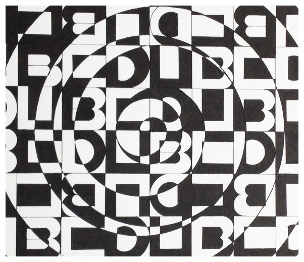 Like the 1985 Pisces, the concept behind this ink painting was a spiral constructed using a symbolic foundation, or more specifically in this work, a grapheme. A is the smallest functional unit of a writing system. As delineated here, the “C” stands for Christoper. Dub is a stand-in for “W”.